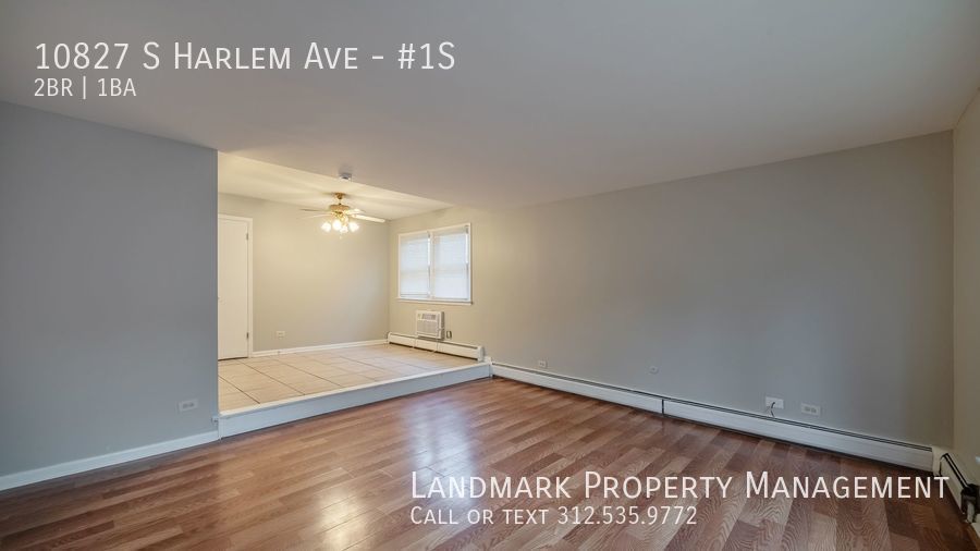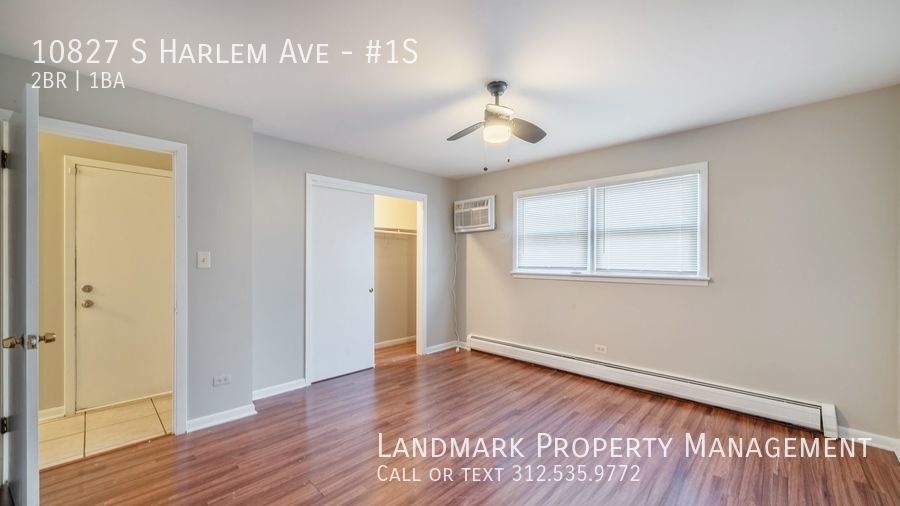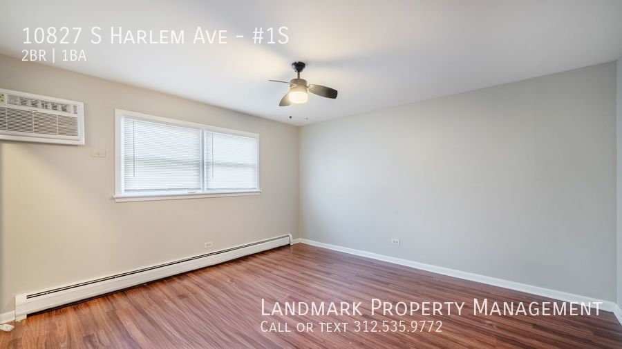 Welcome to our stunning 2-bedroom, 1-bathroom apartment in Worth, IL. This modern space features hardwood floors, high ceilings, and floor-to-ceiling windows that flood the open floor plan with natural light. The kitchen boasts hardwood cabinets and stainless steel appliances, perfect for cooking and entertaining. Relax in the soaking tub after a long day. Stay comfortable year-round with ceiling fans and window-unit AC. Parking is included for your convenience. Don't miss out on this stylish and functional apartment in a prime location. Contact us today to schedule a tour!