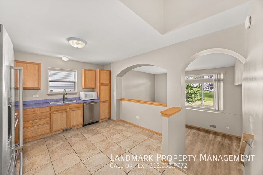 Welcome to 437 Maggie Lane, Romeoville, IL, a stunning 2-bedroom, 2-bathroom home that offers a perfect blend of comfort and modernity. This home boasts a spacious open floor plan, high ceilings, and large windows that allow for an abundance of natural light. The kitchen is a chef's dream with its granite countertops, stainless steel appliances, and hardwood cabinets. The master suite is a private retreat featuring a luxurious soaking tub in the master bath. The home also offers the convenience of in-unit laundry. The property features a fenced yard and a backyard, providing ample outdoor space for relaxation or entertaining. The home also includes a garage for secure parking and a storage closet for additional space. Please note, no cats or dogs are allowed in this property. With central air conditioning and hardwood floors throughout, this home offers a comfortable and stylish living environment. Discover the charm of 437 Maggie Lane, Romeoville, IL today.