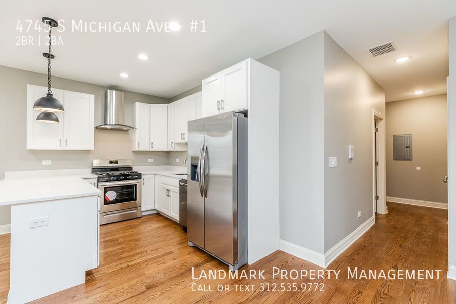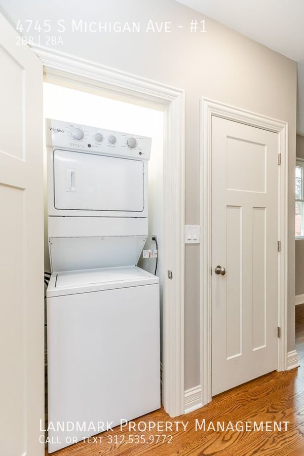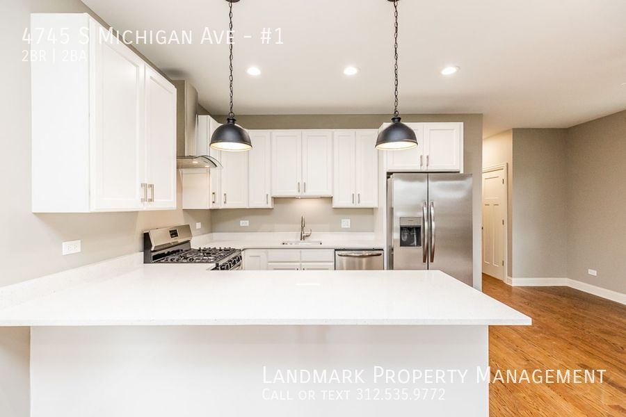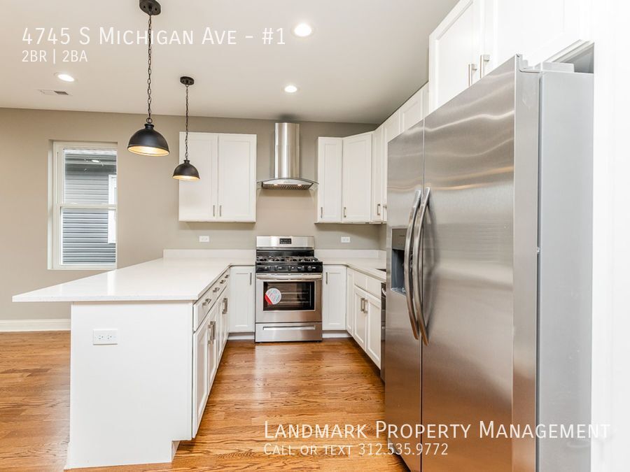 Welcome to 4745 Michigan #1, a stunning 2-bedroom, 2-bathroom apartment located in the heart of Chicago, IL. This modern unit features beautiful hardwood floors, hardwood cabinets, and high ceilings throughout. The floor to ceiling windows flood the open floor plan with natural light, creating a bright and inviting space. The kitchen boasts granite counters and plenty of storage space. Enjoy the privacy of a fenced yard and the convenience of laundry in unit. Parking is available for residents. Don't miss out on this fantastic opportunity to call 4745 Michigan #1 your new home!
