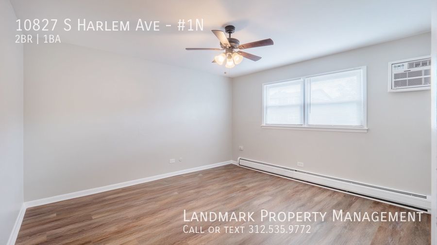 Welcome to our stunning 2-bedroom, 1-bathroom apartment located in Worth, IL. This apartment features beautiful hardwood floors, high ceilings, and floor to ceiling windows that flood the space with natural light. Stay comfortable year-round with ceiling fans and window-unit AC. The open floor plan is perfect for entertaining, and the hardwood cabinets provide ample storage space. All bedrooms offer hardwood floors with great closet space. They will easily fit a queen size bed. Well sized bathroom with stand in shower and tub. Parking is included for your convenience. Contact us today to schedule a tour of this amazing apartment!